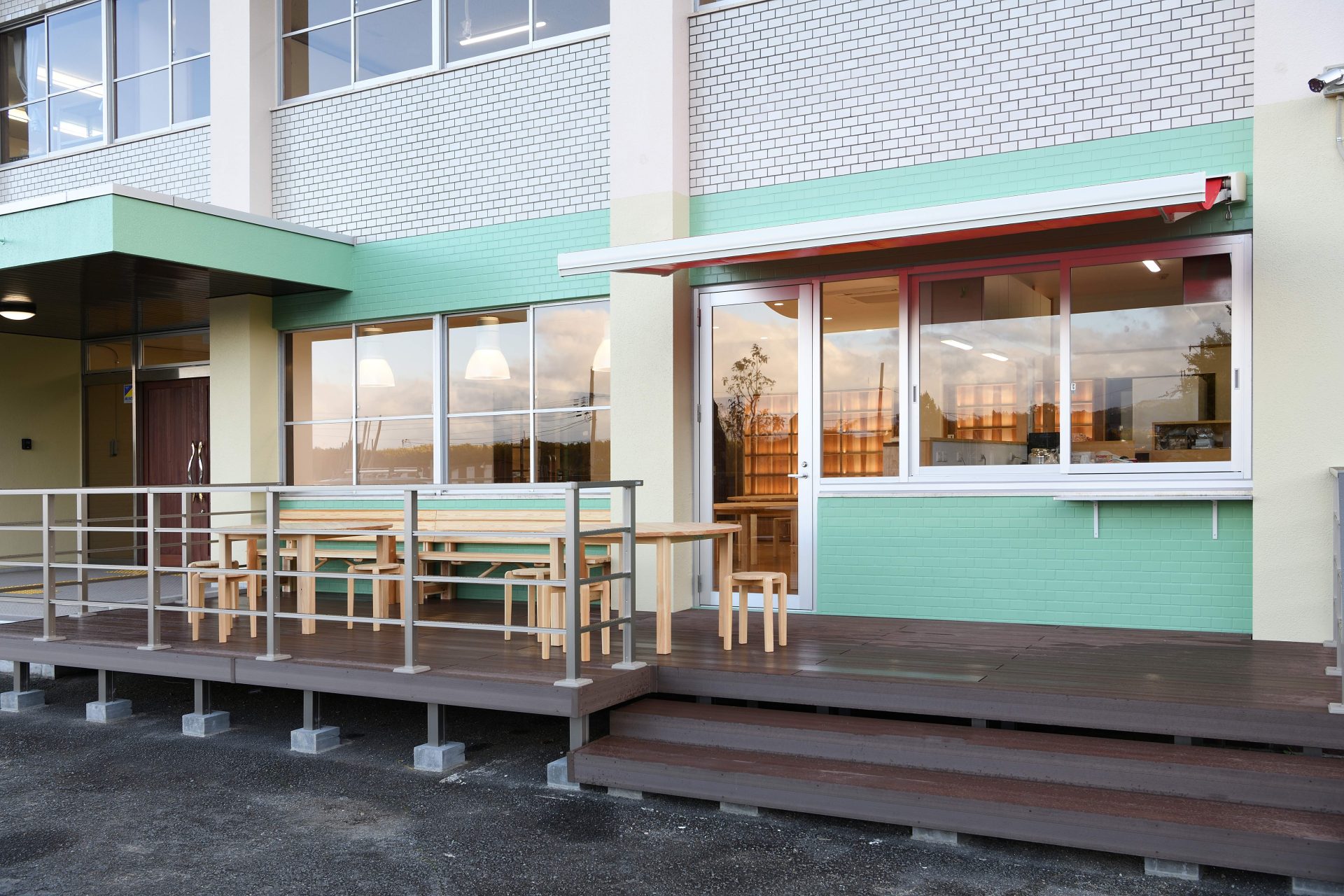 この施設内には、子どもの遊び広場やカフェ、販売所、屋外のウッドデッキには、府内産木材を使用した机、長椅子をはじめとする家具やすべり台などの遊具を配置しています。これらの木製品は、京都府ひろがる京の木整備事業の採択を受け、この助成金を活用し、府内産木材を活用した木製品を使用しています。地域の絆をはぐくみ、環境にやさしい持続可能な社会づくりを目的に、木の温かみや優しさが感じられる福祉施設として運営してまいります。